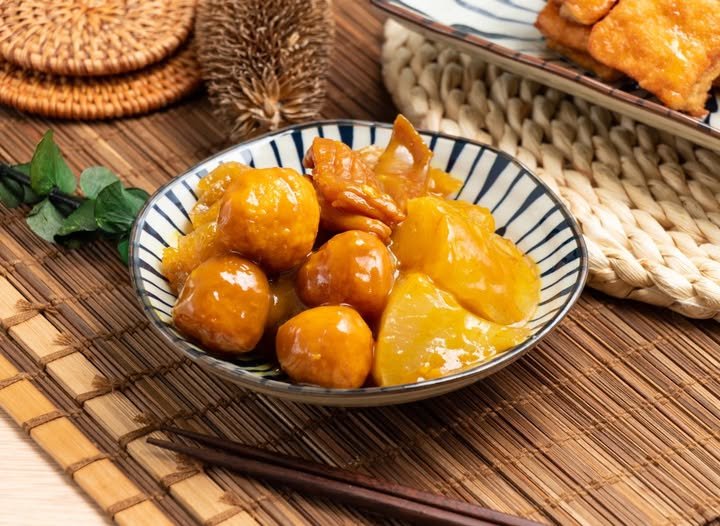 แกงกะหรี่สามอย่างสไตล์ฮ่องกง รวมลูกชิ้นปลา ปลาหมึก และหัวไชเท้า รสเข้มข้นเต็มคำ